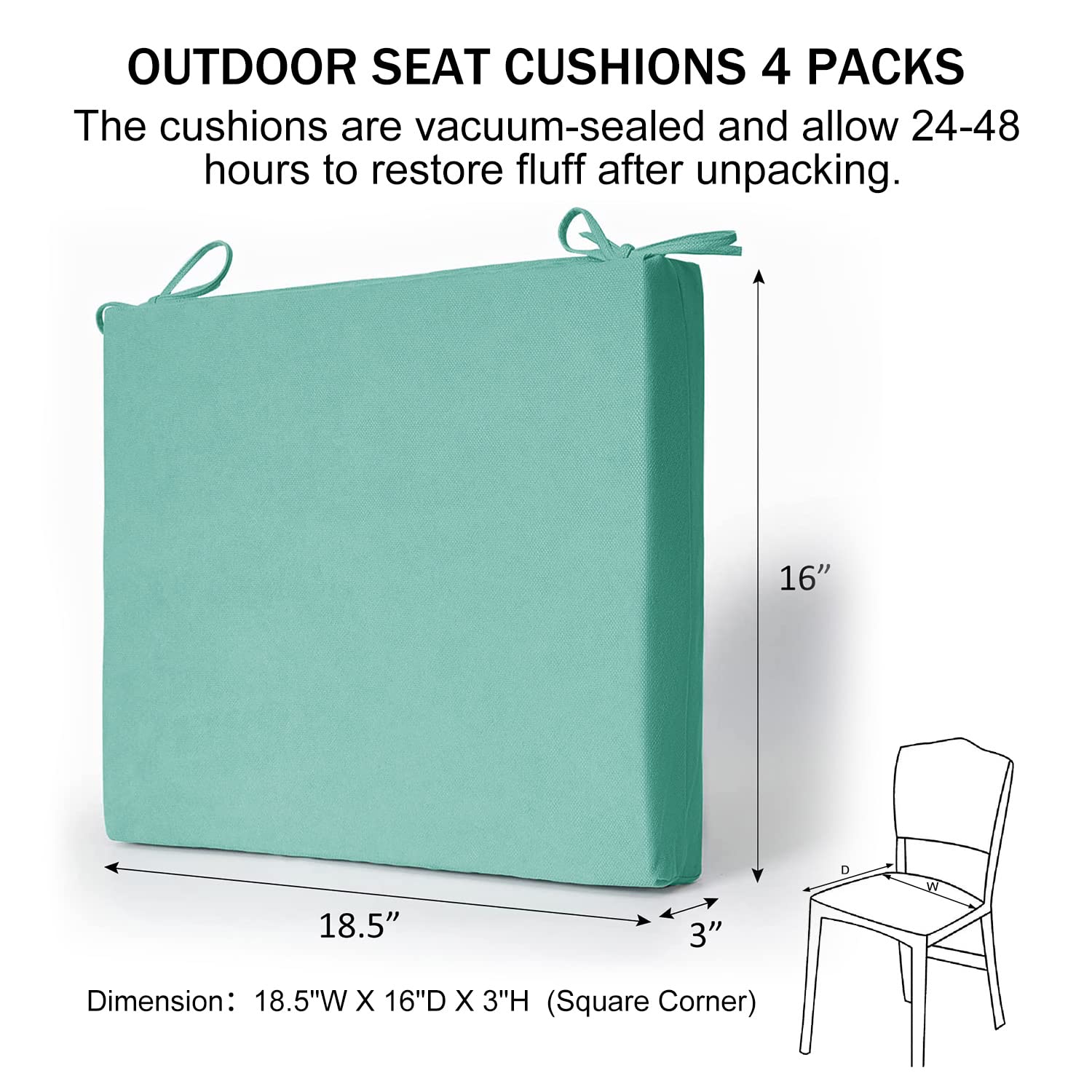 Amazon Com Downluxe Outdoor Indoor Waterproof Square Corner Seat Cushion For Patio Garden Funiture 18 5 X 16 X 3 Aqua Blue 4 Pack Patio Lawn Garden